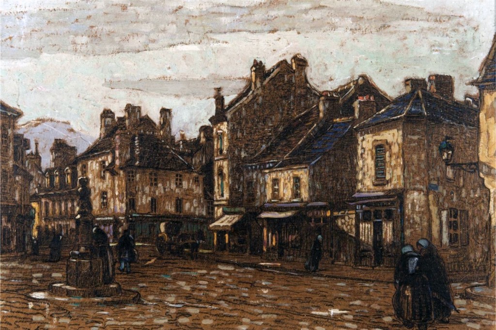 Il promène son chevalet dans les rues d’Alençon et les chemins environnants, nous léguant une place Saint-Pierre animée ou une rue de la Poterne déserte.