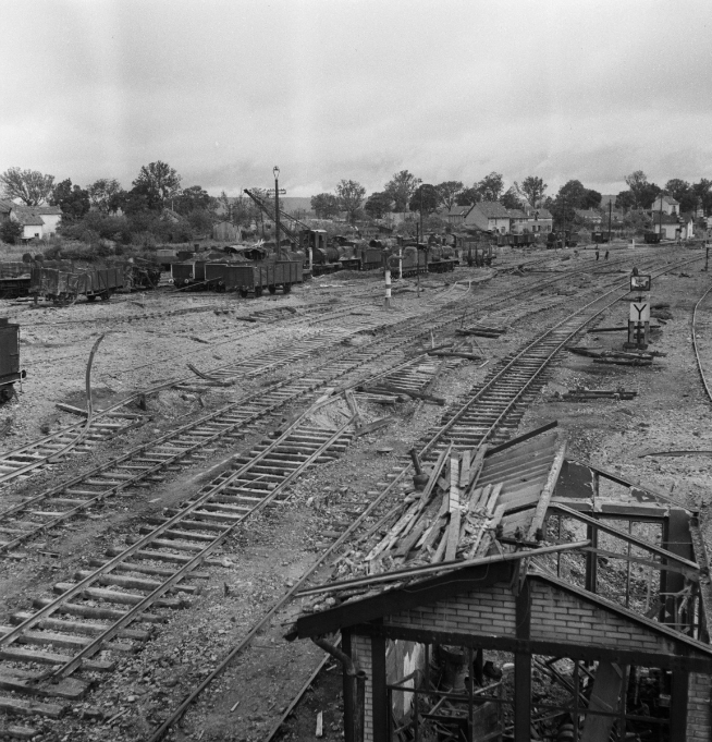 En arrivant par la route de Paris, les bénévoles du COSI découvrent les bombardements de Courteille et de la gare d’Alençon, depuis le pont de Verdun. La gare, visée par les Allemands dès 1940, subit à nouveau des destructions avec les bombardements du 6 juin 1944. Après ces attaques, elle est partiellement dégagée des gravats pour la rendre fonctionnelle. Malgré ces efforts, l’efficacité des bombardements alliés pour neutraliser le transport ferroviaire allemand reste évidente.